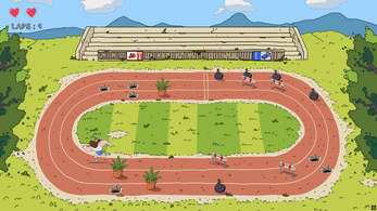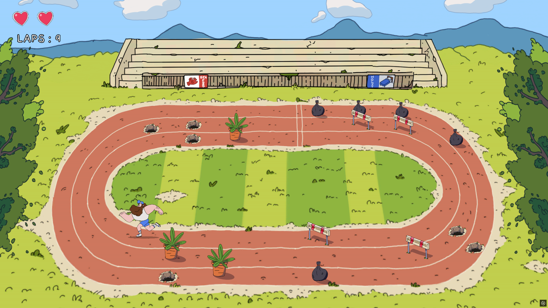 You are John Lokke, training for your town’s annual race. Your goal is to complete as many laps as possible. Be careful, obstacles appear mid-run, and your focus may sometimes shift away from the track!